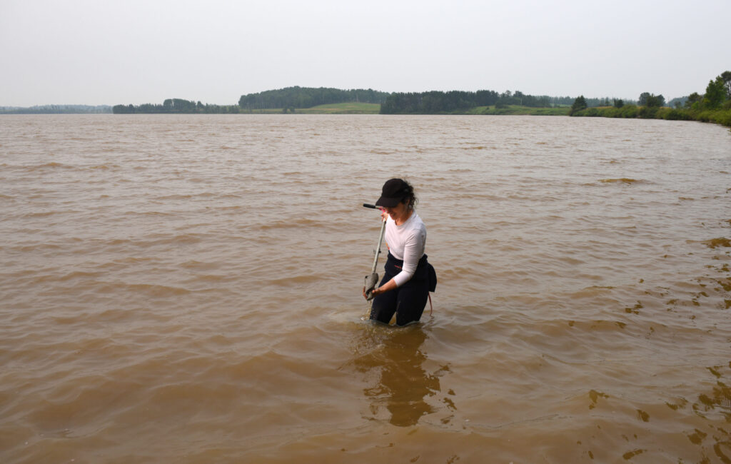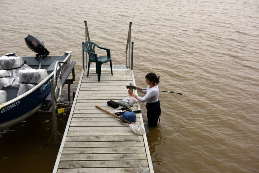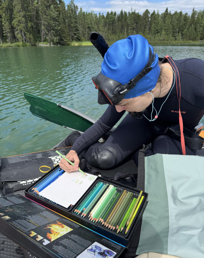 Selected following an annual call for projects held by the Foundation, Andréanne will undertake a research-creation residency in the Foundation’s central gallery beginning in January 2026. In this context, she will deepen a dialogue between her underwater perceptual experiences and Molinari’s colorful fields. After exploring several clay lakes in Abitibi during the summer of 2025, she compiled color charts that allowed her to examine a wide variety of color ranges and saturations. Using the clay samples she collected, she produced the raw material—pastels—used to create new works that will resonate with those in the Foundation’s collections. The exhibition presenting the results of her residency will run from March 12th to May 24th, 2026.